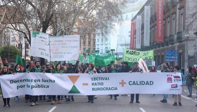 Desde febrero del año pasado se han realizado 10 huelgas en la enseñanza pública no universitaria. Las dos últimas se han convocado para el 28 y 29 de abril por Menos Lectivas y por varios sindicatos vinculados a esta plataforma (CNT, CGT y STEM). Esta última huelga tiene además la peculiaridad de que el lunes 28 está convocada también la Universidad pública, todo bajo el paraguas de defensa de lo público. ¿Pero, qué es lo público? No es sino la organización de la educación bajo la titularidad del Estado. Un Estado que no es neutral sino que se encuentra definido por los intereses y la lógica del capitalismo. Por eso la defensa de la educación pública no es sino la defensa de ese Estado burgués al que se le concede falsamente un carácter positivo frente a la enseñanza privada, como si fueran ambas expresiones de una naturaleza social diferente.