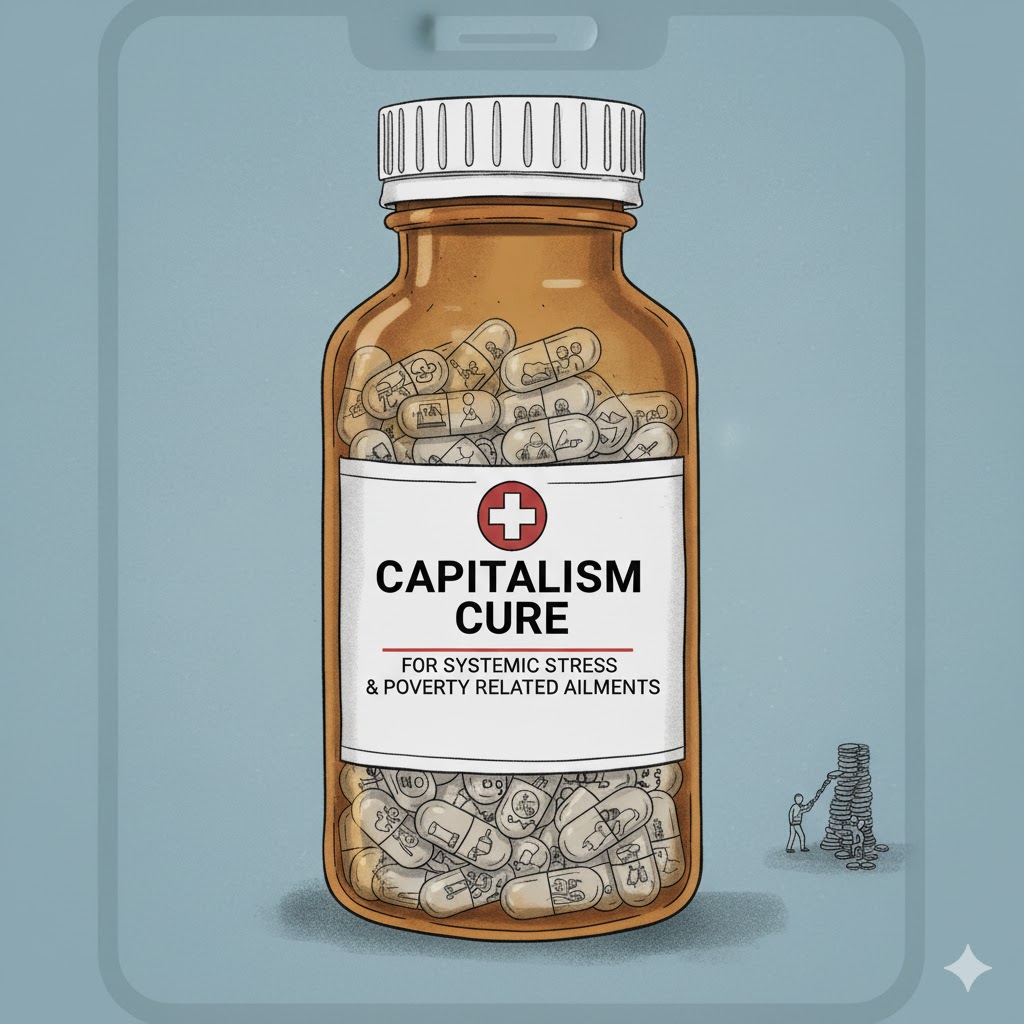 En la mayoría de los casos, está acompañada de tratamientos farmacológicos, tan nocivos (aunque sí es cierto que pueden solapar/aliviar síntomas dolorosos) como rentables para la industria farmacéutica. Y a la postre tan inevitables, no ya por la ausencia de otras terapias, si no por la presencia de un contexto social que solo puede reproducir el sufrimiento emocional.